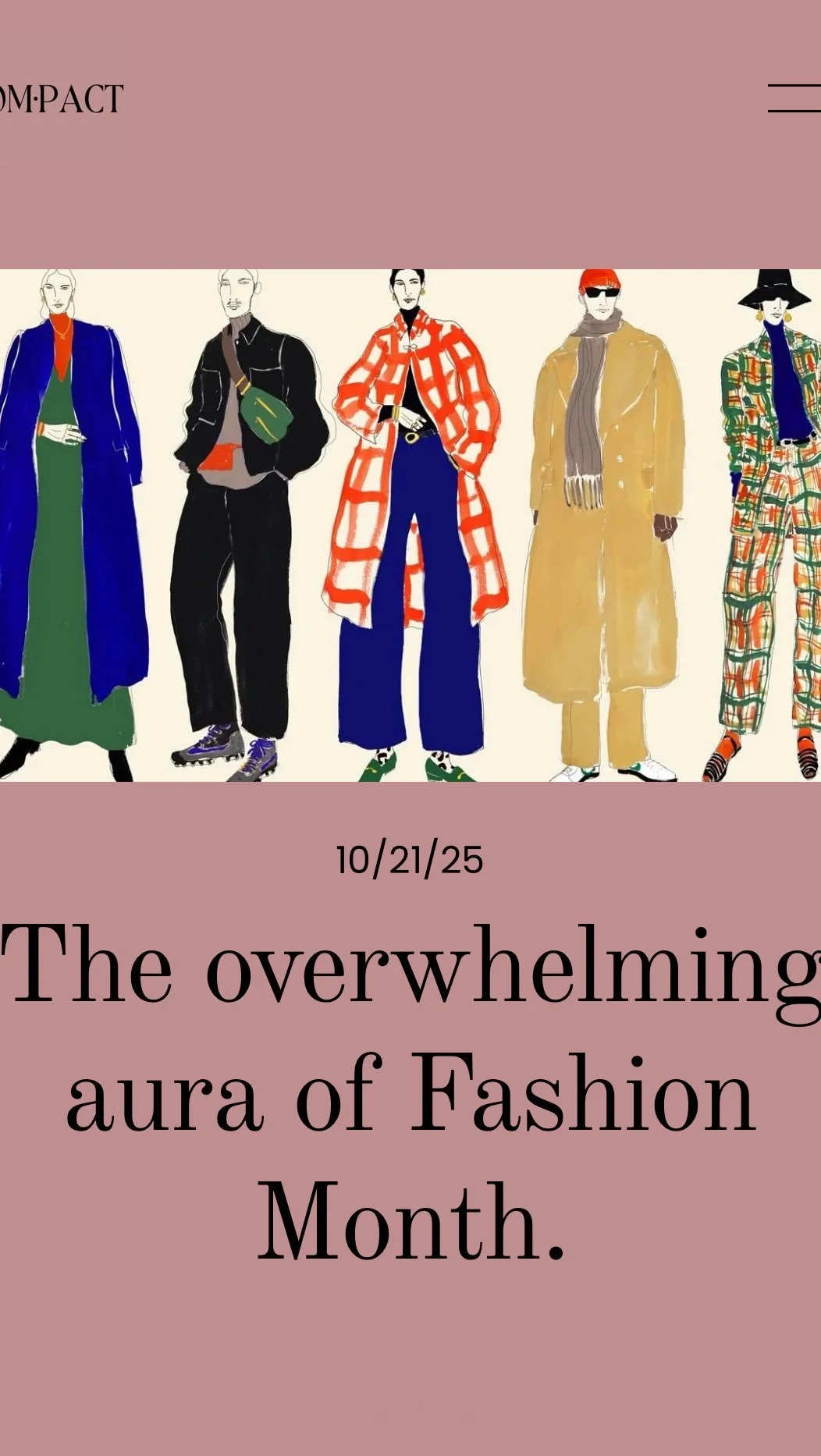 With a discerning eye and a passion for detail, COMPACT curates a distinct perspective that celebrates artistry, individuality, and timeless style. From editorial features to behind-the-scenes narratives, our work offers a refined lens on the people, places, and pieces shaping the fashion landscape today. Every image, every word, every moment is chosen with intention — creating a space where style feels both deeply personal and undeniably elevated.
