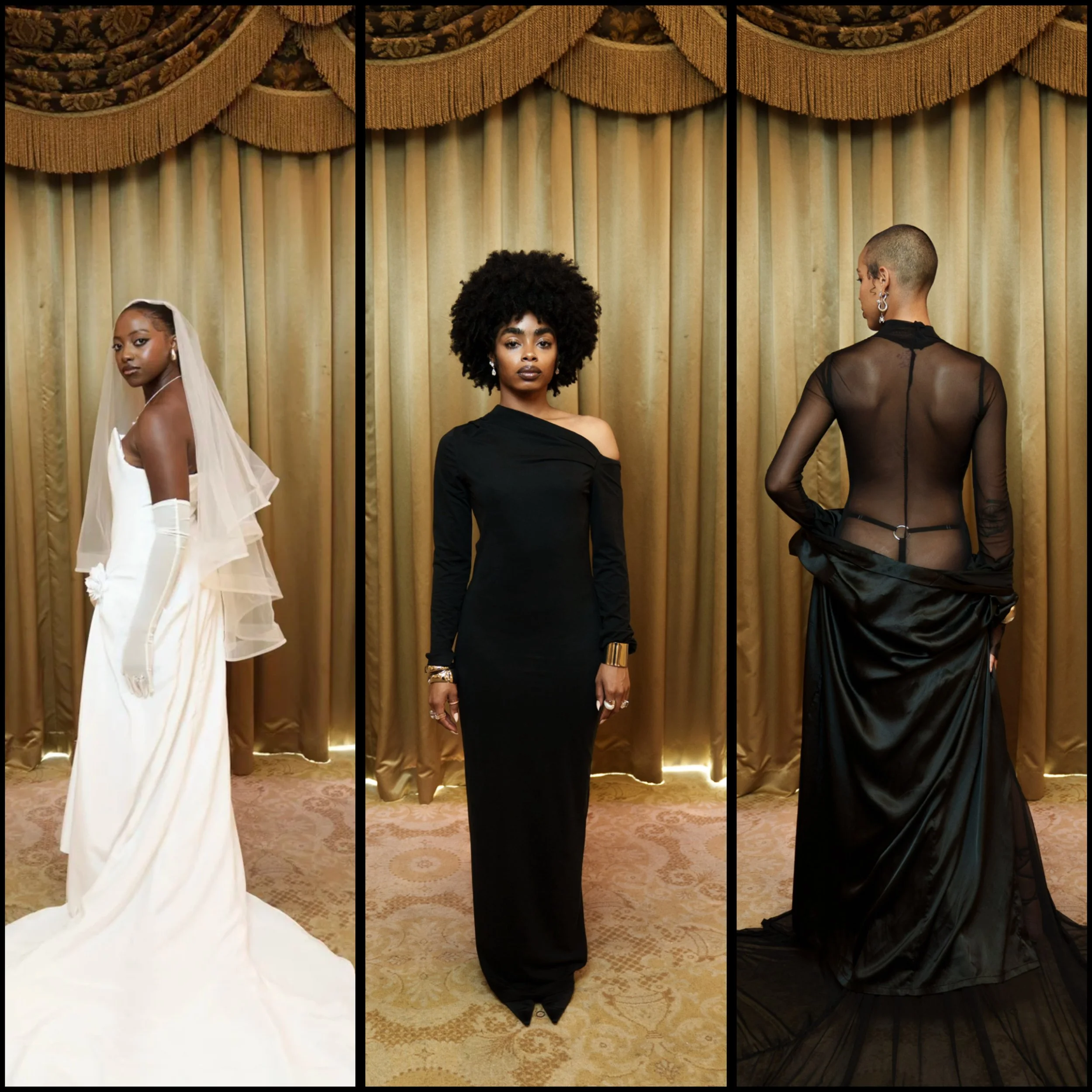 “I wanted the first look to be the white wedding gown, almost to trick the viewer. When you think of weddings, you naturally associate them with love, joy, and positivity. I wanted to subvert that expectation, which is why I paired it with FKA Twigs’ Cellophane. The lyrics—"I do it for you, why don’t I do it for you, why won’t you do it for me’—reflect the theme of giving love without receiving it in return, perfectly tying into the message of the collection.”